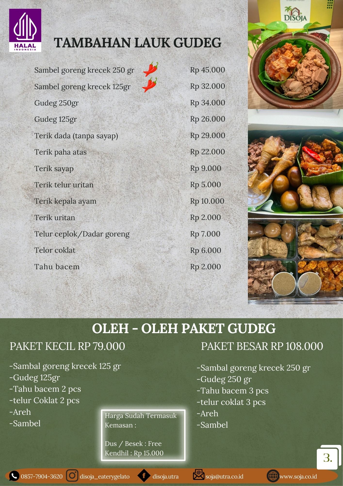 Nasi + Gudeg + Krecek + Dada Ayam Terik (Tanpa Sayap)